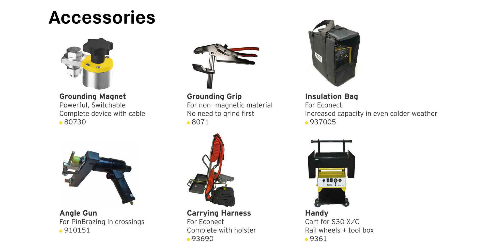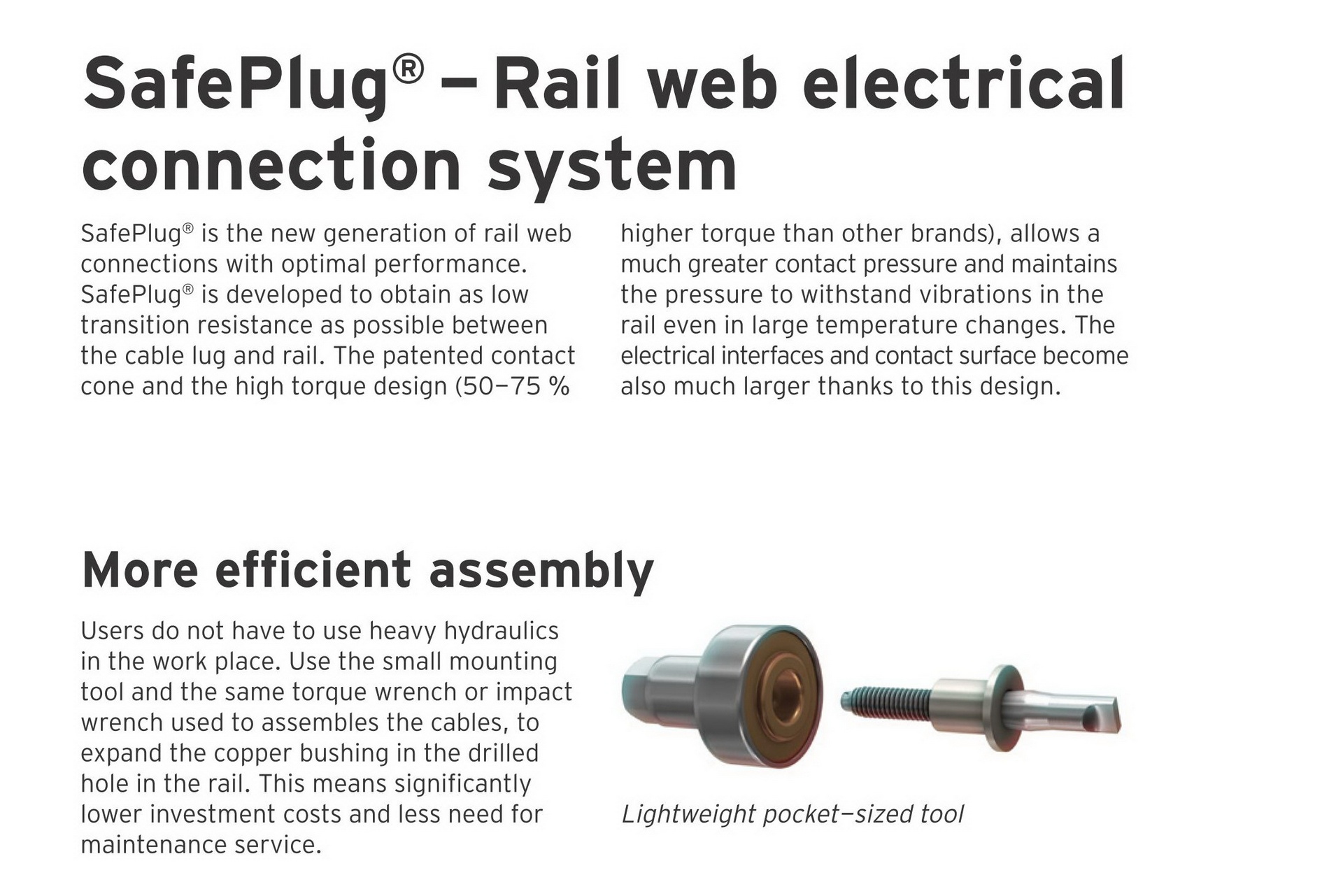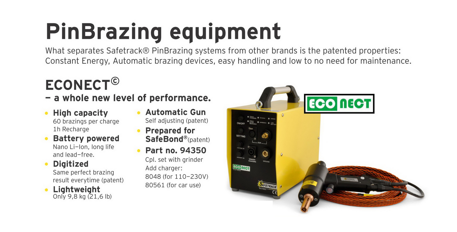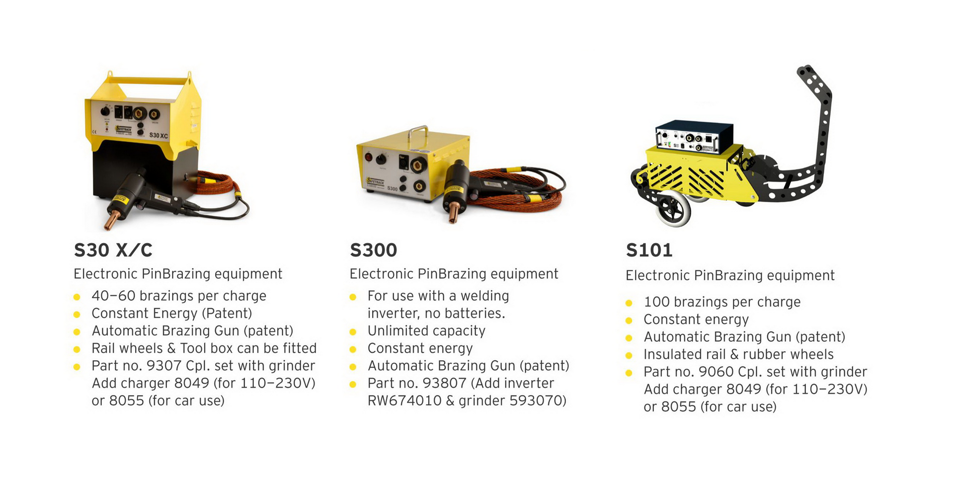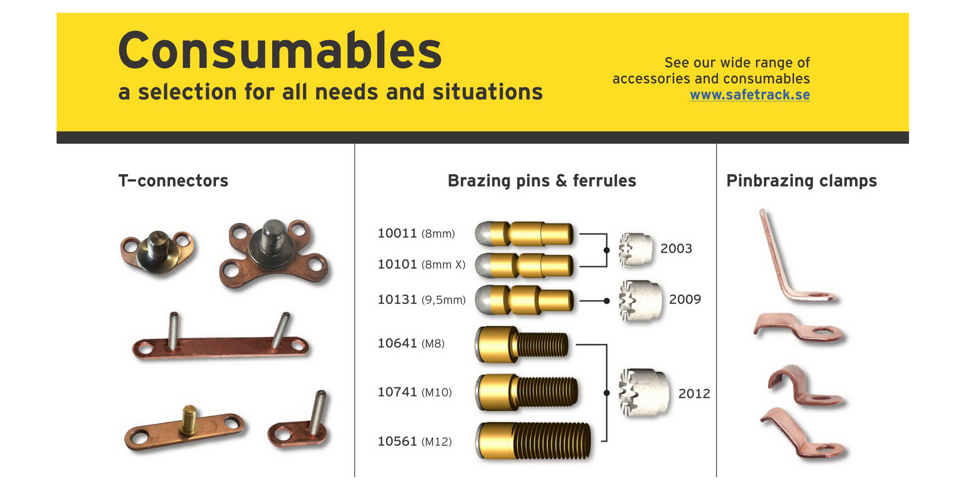 Safetrack® patented Pin Brazing system is a unique battery driven brazing method to applicate electrical connectors to steel structures like railway rails. Used for connecting signal bonds, rail bonds, power and return bonds and for grounding cables. The system is also used with great advantage within cathodic protection (CP) systems.